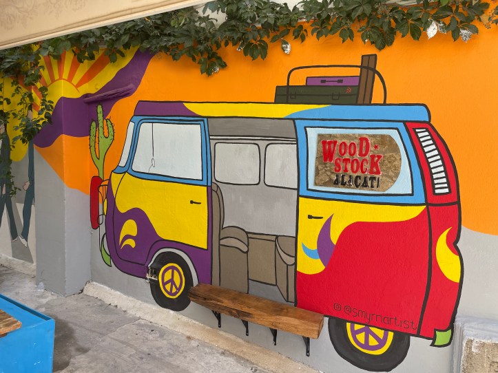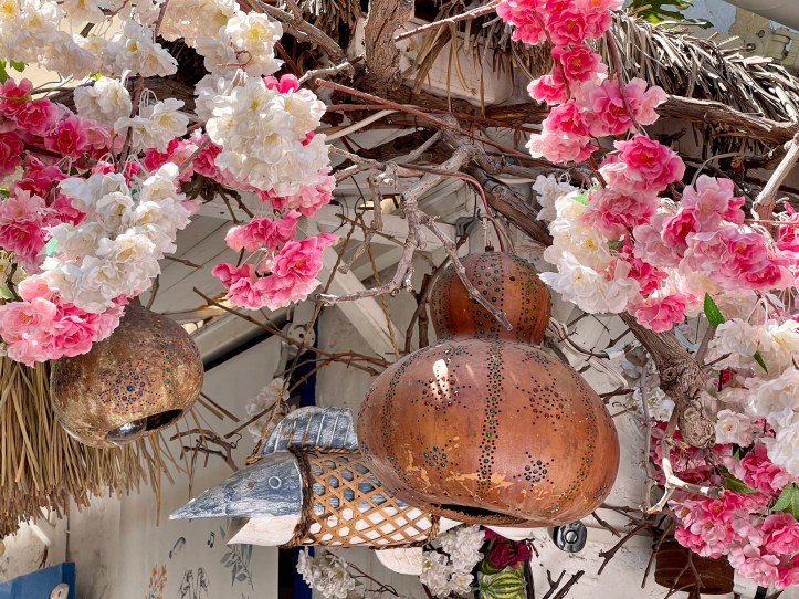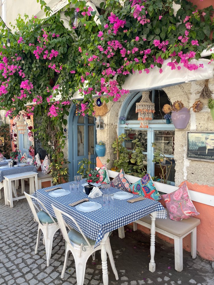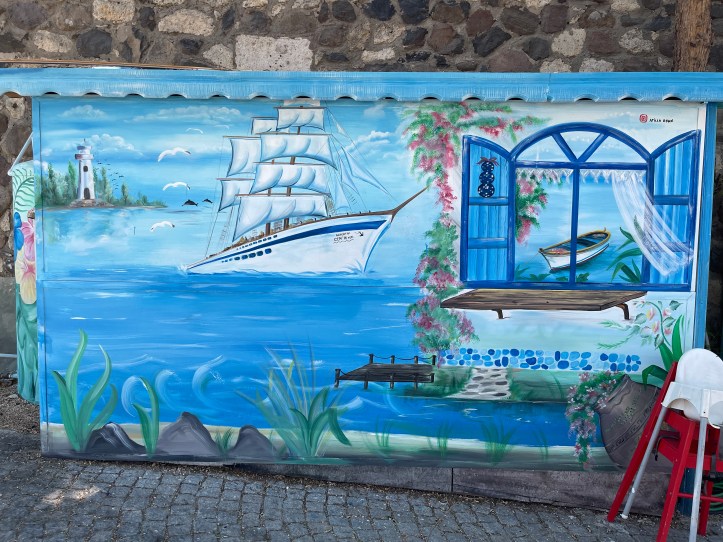 After our walk in Çeşme, we drove to Alaçatı and parked in a small lot. Get there early if you’re going to use it. Alaçatı is super cute and very photographic. It is mostly cafes and shops and not our kids’ favorite spot. It was also hot and uncomfortable in a mask. It would be a really great spot to go with only adults or as a romantic couple event and spend the night in a cute hotel, wander the streets, eat in the cafes, and browse the shops. The kids just kept asking when it was time for lunch and then when it was time for ice cream. August with kids during Covid was probably not the best combination!