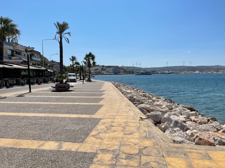 We went to Çeşme mostly to see the Aegean Sea as downtown Alaçatı was our primary goal. (Pronunciation reminder–the squiggle under the c and s make them say /ch/ and /sh/ respectfully. So Çeşme is “chesh-meh” and Alaçatı is “aa-LAA-chaa-tuh.”) Çeşme’s water view was beautiful.