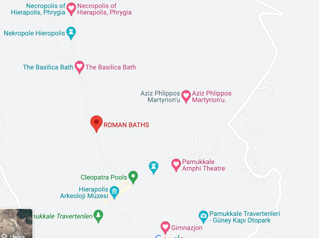 There are three entrances–the downhill one near the town, which requires walking up the hill (not recommended), and then the two uphill ones. One is much more northern than the other one. We were trying to figure out how to get to the top, but end at the bottom. Luckily, our hotel drove us in their shuttle to one of the uphill parking lots (South Gate) to drop us off. We started with the ruins at Hieropolis, and ended with the pools/travertines.