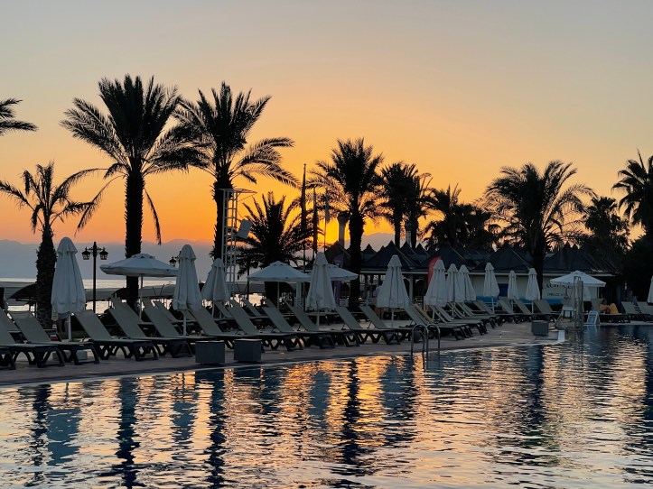 We spent 4 nights at Papillon Belvil in Belek, near Antalya on the Med Sea coast. It was glorious and we never left the hotel grounds the entire time except for a 2 hour boat ride along the coast. We hadn’t done any beach time this summer, so to fit in a beach and pool trip before it got cold was delightful.