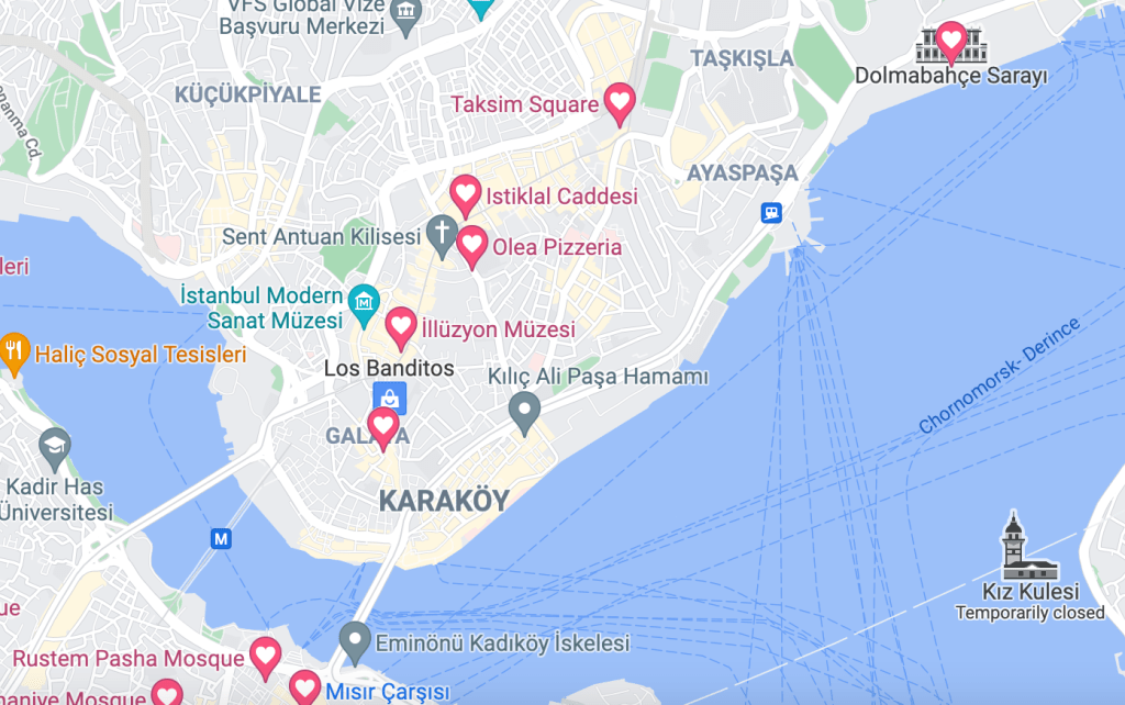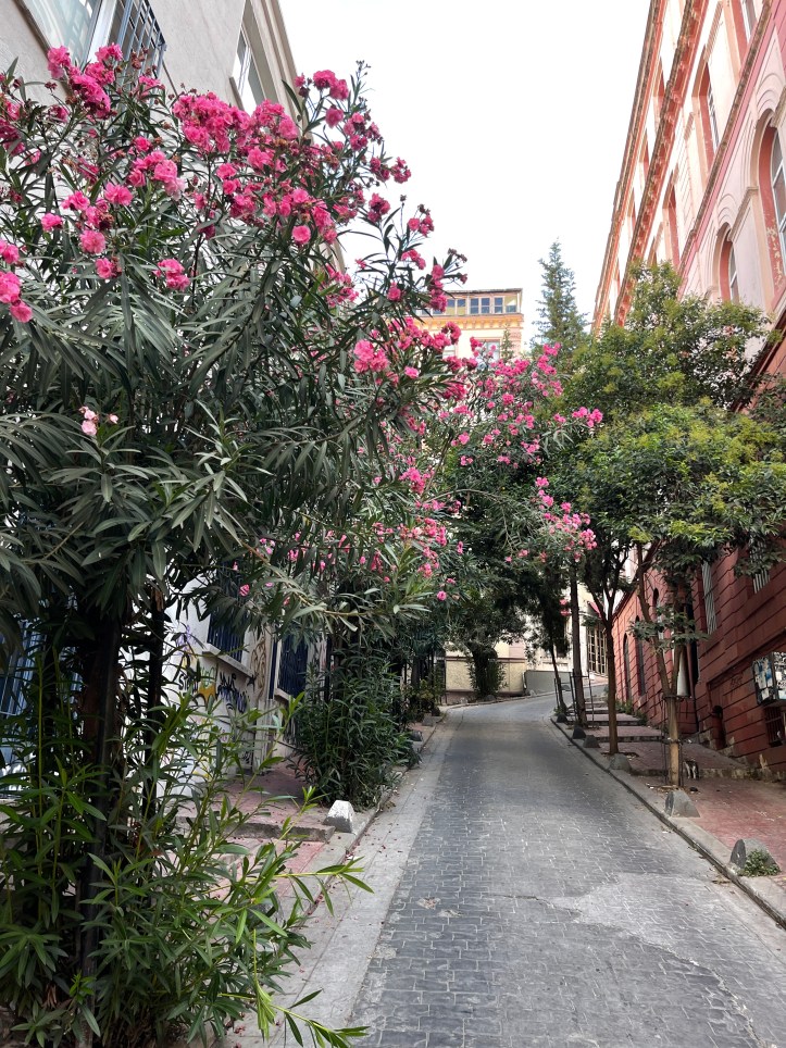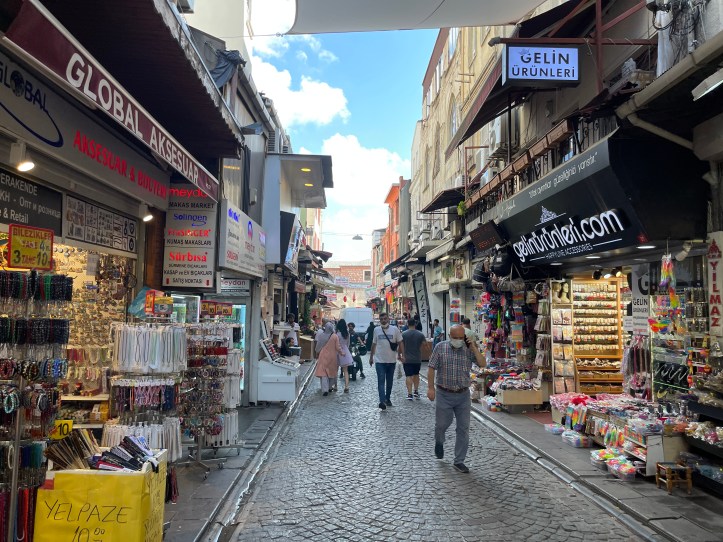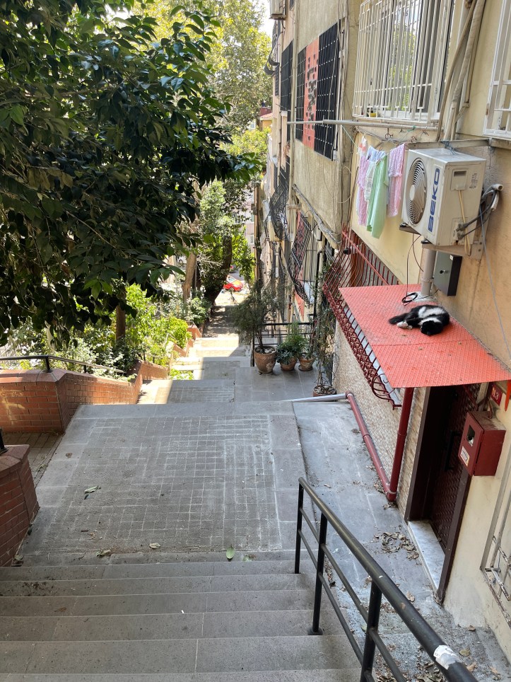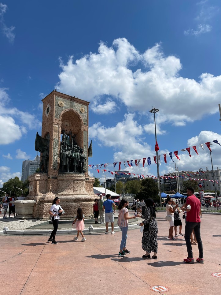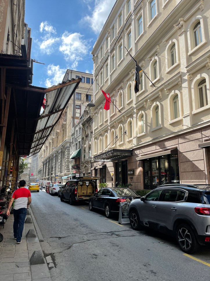 From Galata Tower, we wandered 6 minutes to İstiklal Cd (Street), which is well known for its wide, pedestrian friendly street with tons of shops. It is not quite a mile long. We didn’t do many stops, aside from a quick Turkish Delight purchasing and to pop into a historic church. We ended at Taksim Square, which was busy and packed with shops. I gather it has quite the nightlife. We ate at Kitchenette and enjoyed our meal, a bit of A/C and the bathrooms. Lunch for 3 adults and 2 kids was 390 tl with tip or about $45.
