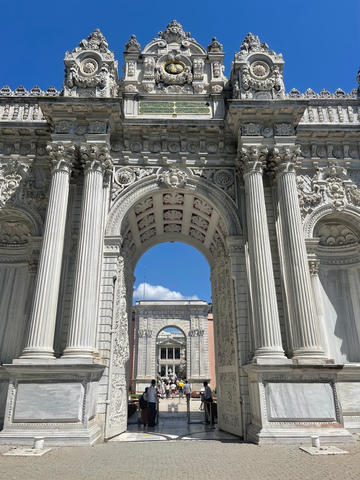 Our next destination was Dolmabahçe Palace. It was about 22 minute walk from Taksim Square (AND downhill!). The line to get in was LONG. The Musekarts only got us entry to part of it (Harem section was covered, but not the Selamlık or men’s area), so we all needed tickets. Definitely recommend getting there early when possible. There are also no bathrooms in the palace and you’ll have to go at the Dolmabahçe Mosque just outside the entrance.