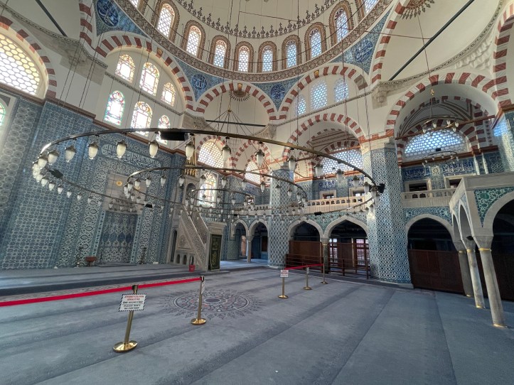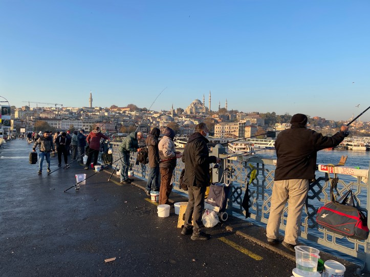 Our final day in Istanbul in November was really just a few hours, as our car was picking us up about 11 am. After breakfast and packing, we headed across Galata Bridge. We loved seeing the fishermen and the birds catching their breakfast. Then we headed to Rüstem Paşa Mosque, which we had loved our last visit. It is covered in blue tiles and is very pretty. Given that the Blue Mosque is currently under renovation and mostly covered up, it is a better stopping point these days! We had the place to ourselves, which is also always a win.
